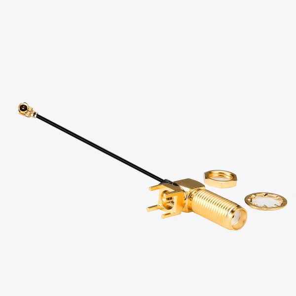 SMA-KE Gold-plated female connector, PCB mounting inner hole to IPEX coaxial cable assembly, Rf cable assembly, Rf connector, wireless communication, high-frequency signal transmission, high-quality materials, stable and reliable performance.